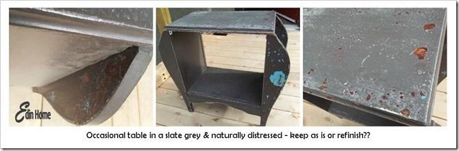 I was immediately taken with the shape and condition of this table. I’m seriously thinking I’ll leave it as is and not refinish it. What do you think?